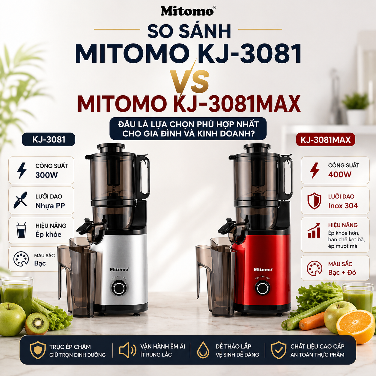 Máy Ép Chậm Mitomo KJ-3079 – Ép kiệt bã – Chuyên dụng cho gia đình