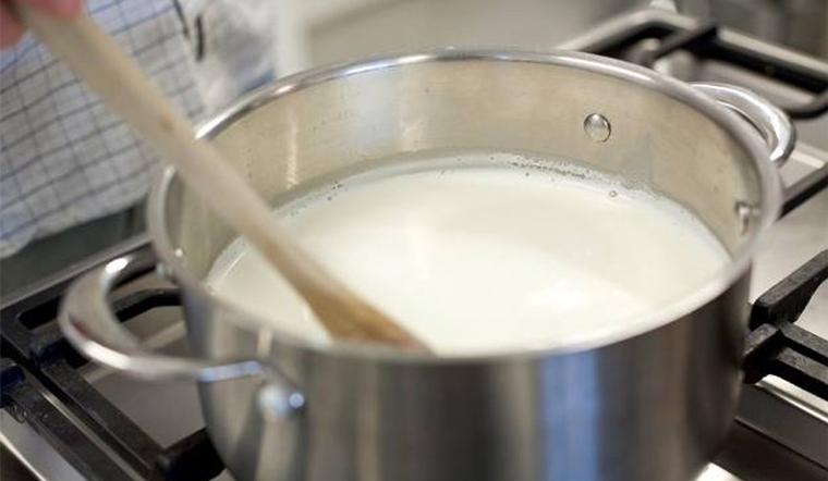 Lưu ý: Bước này bạn nên làm cẩn thận vì nếu lơ là vài phút, sữa dễ bị cháy đáy nồi hoặc tách lớp.
