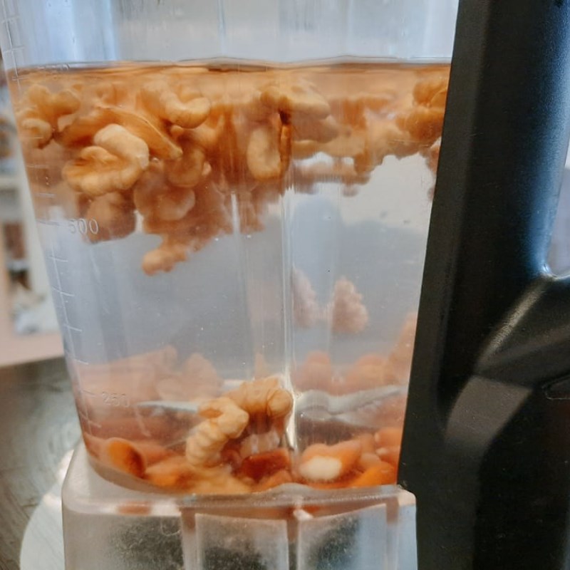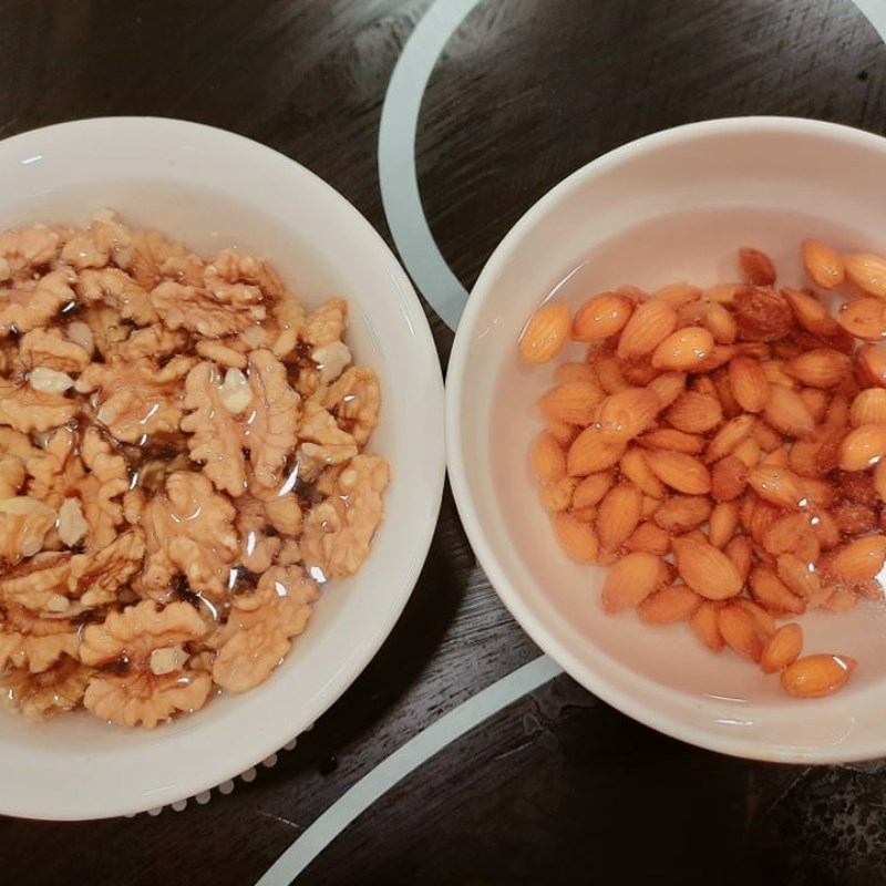 Ngâm óc chó và hạnh nhân 4–6 giờ hoặc qua đêm cho mềm, giúp sữa thơm và dễ xay hơn. Sau đó rửa lại 2–3 lần cho sạch.