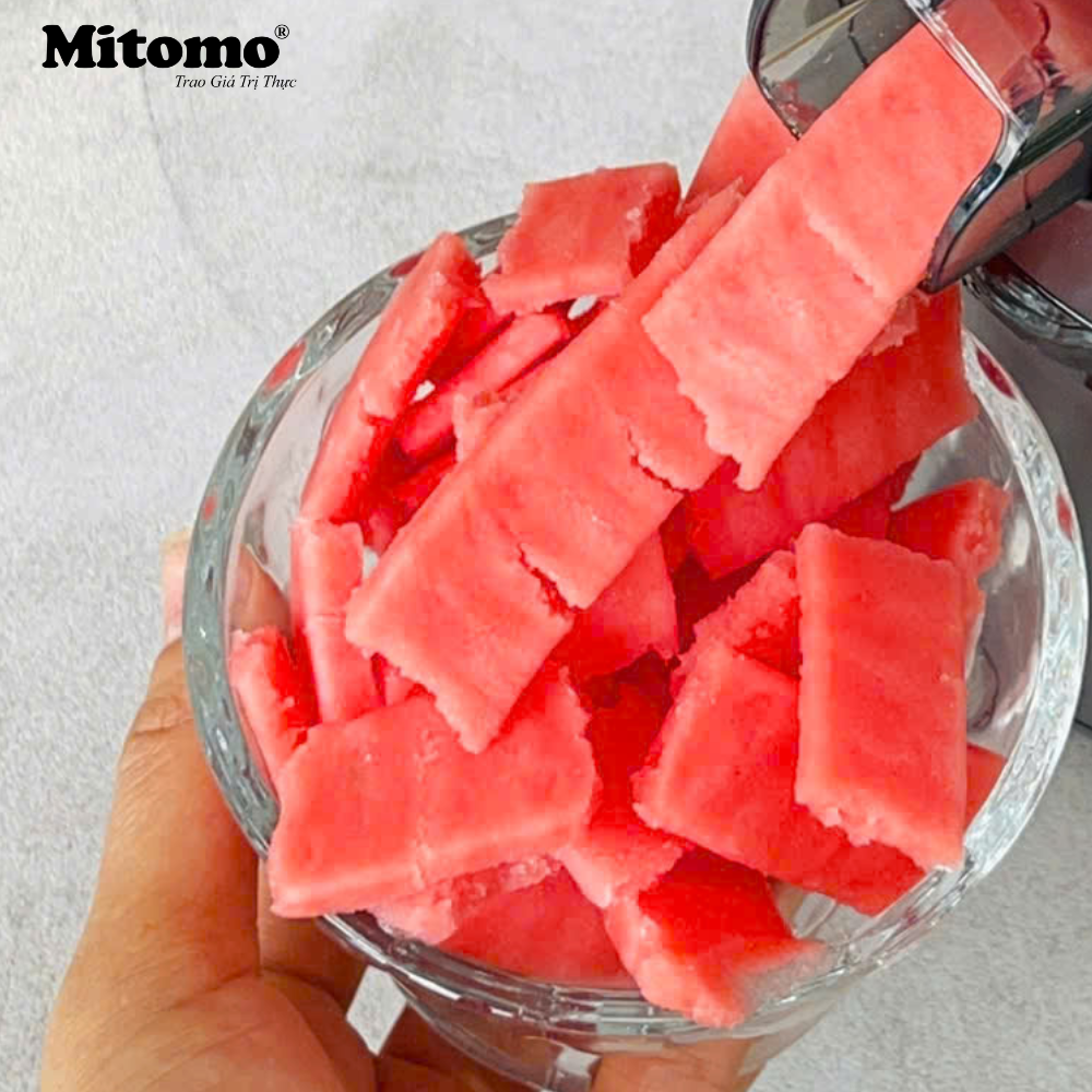 Không chỉ dừng lại ở việc tạo ra những ly nước ép giàu dinh dưỡng, máy ép chậm công nghiệp Mitomo KJ-3081 còn giúp bạn chế biến kem trái cây mịn mượt – mát lạnh – an toàn cho cả gia đình, đặc biệt là trẻ nhỏ trong mùa hè.