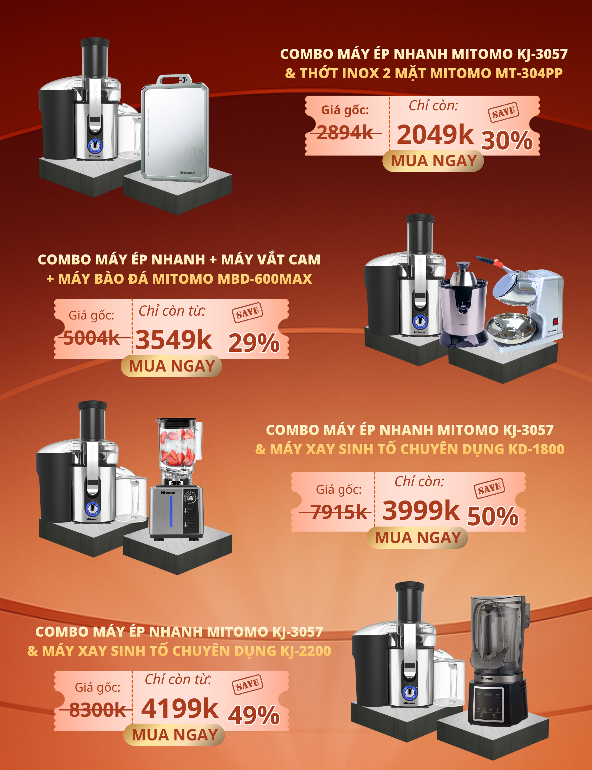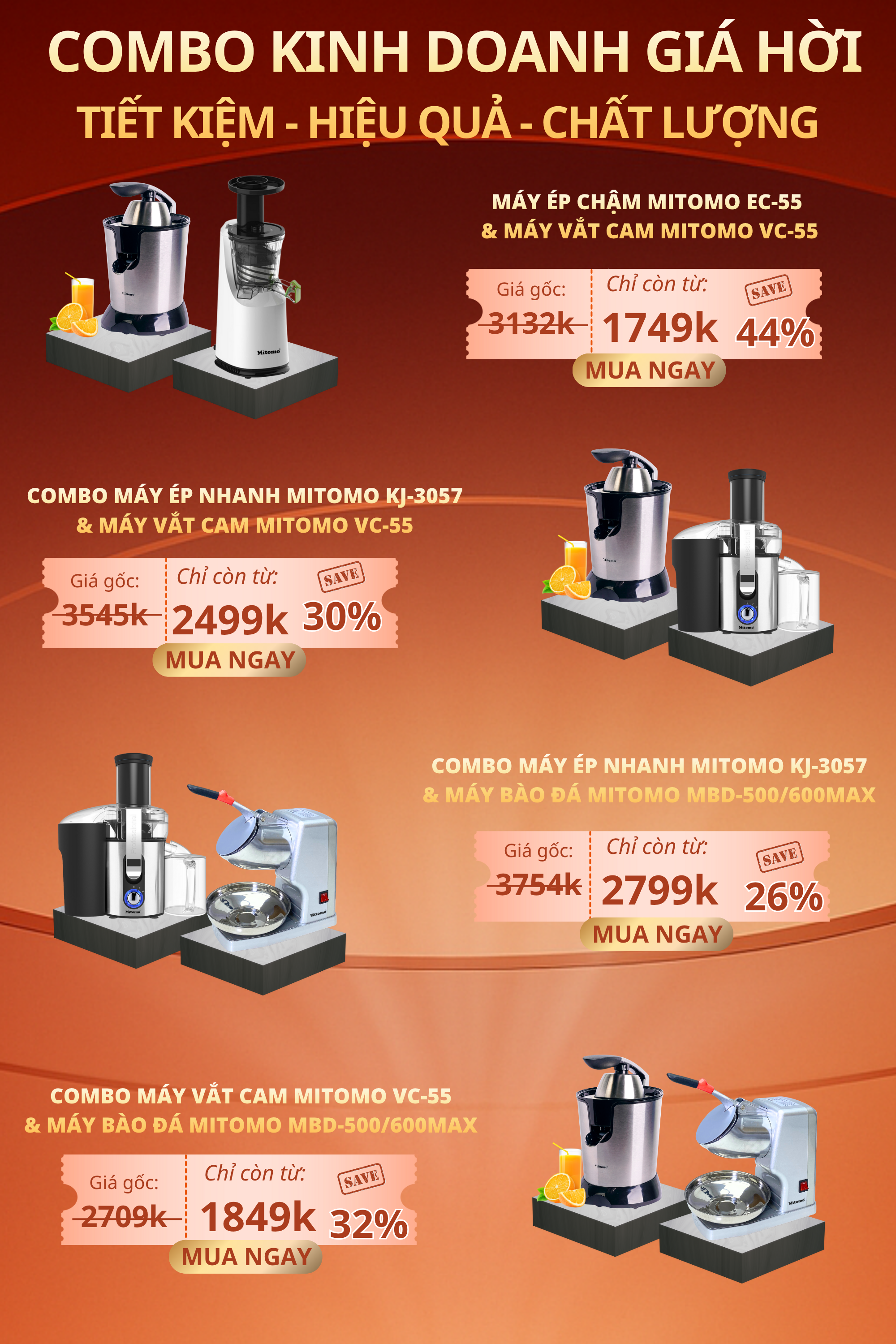 - Trong tháng 11 này, Mitomo mở những combo máy móc hoàn hảo cho quán cà phê, nước ép, trà sữa với giá siêu tiết kiệm so với mua đơn lẻ.