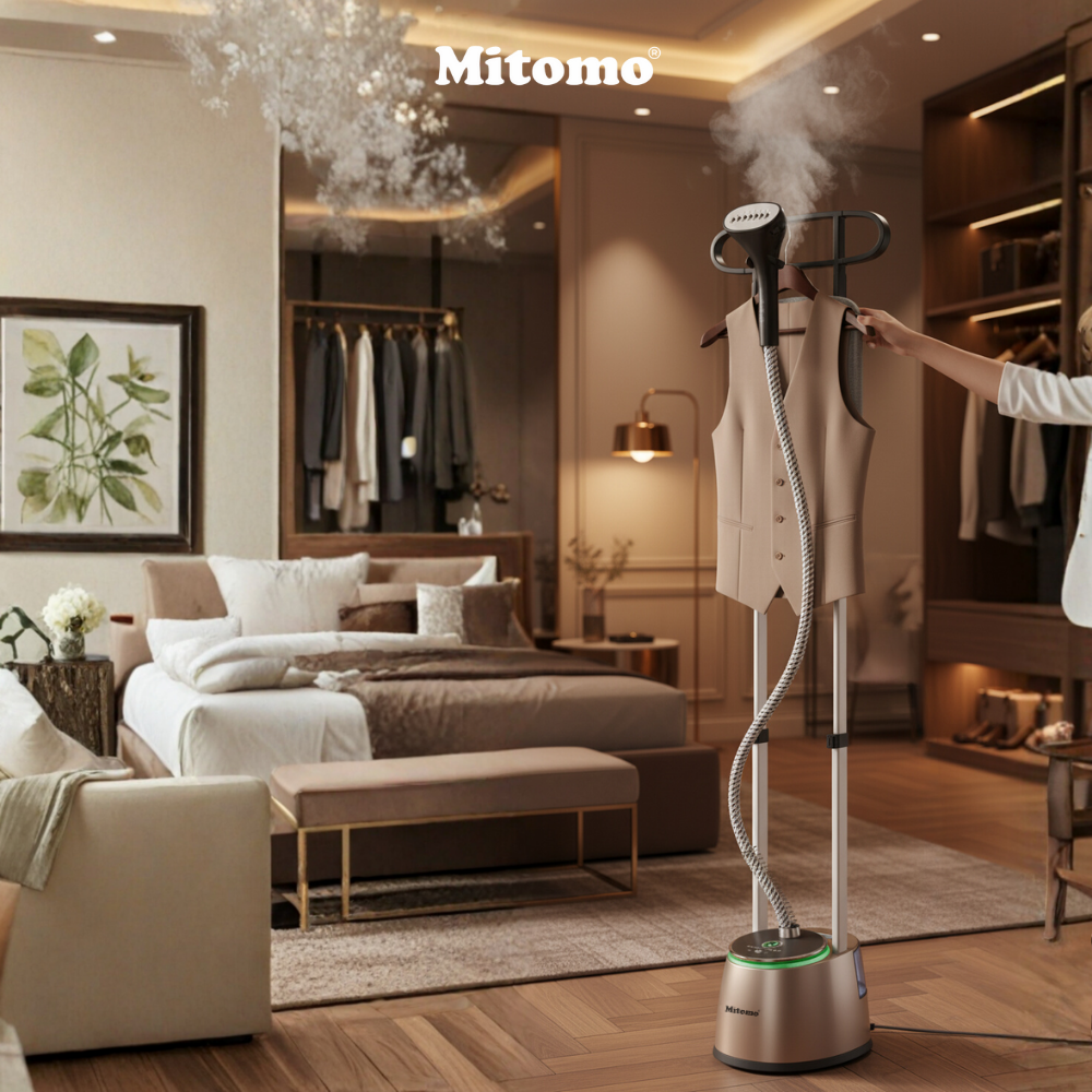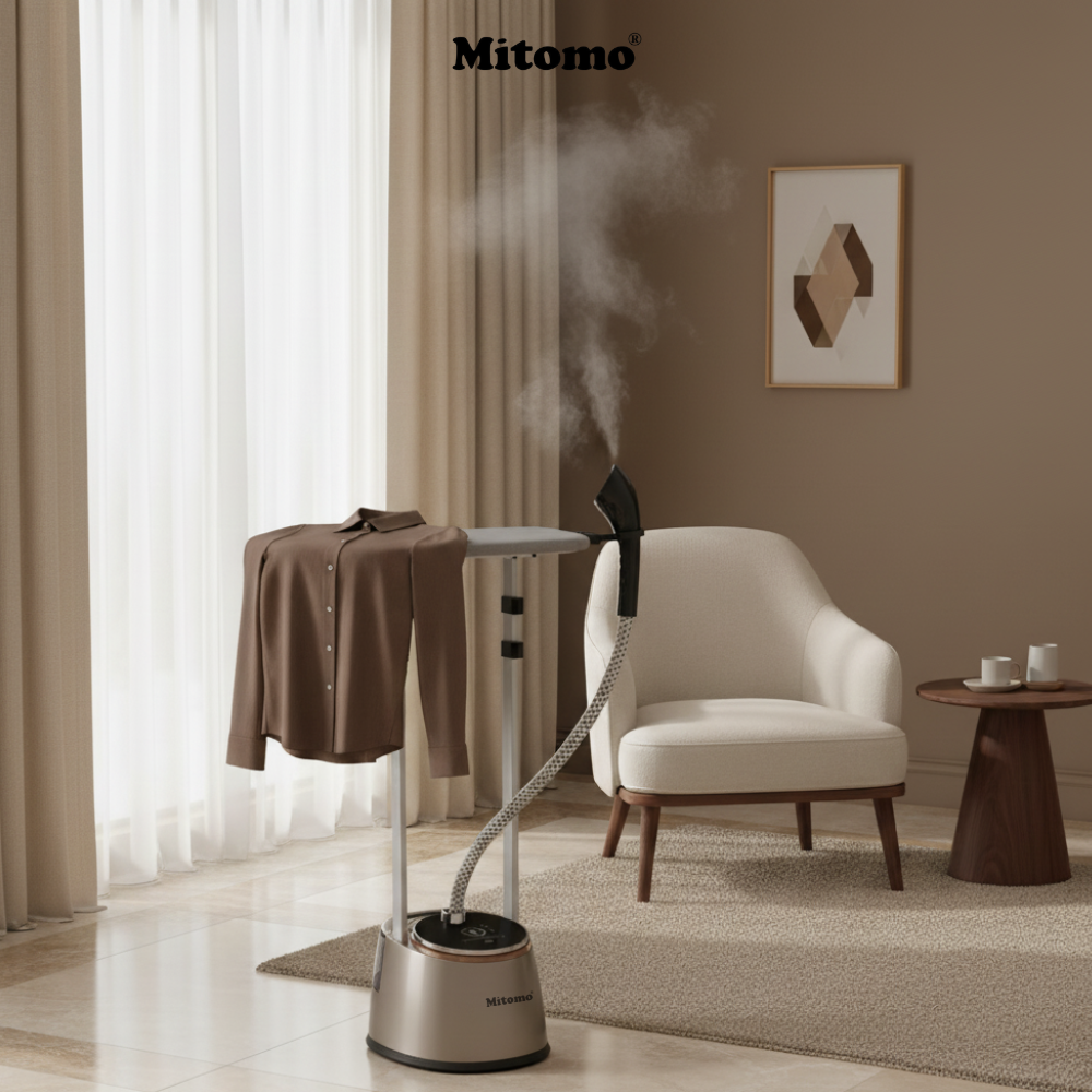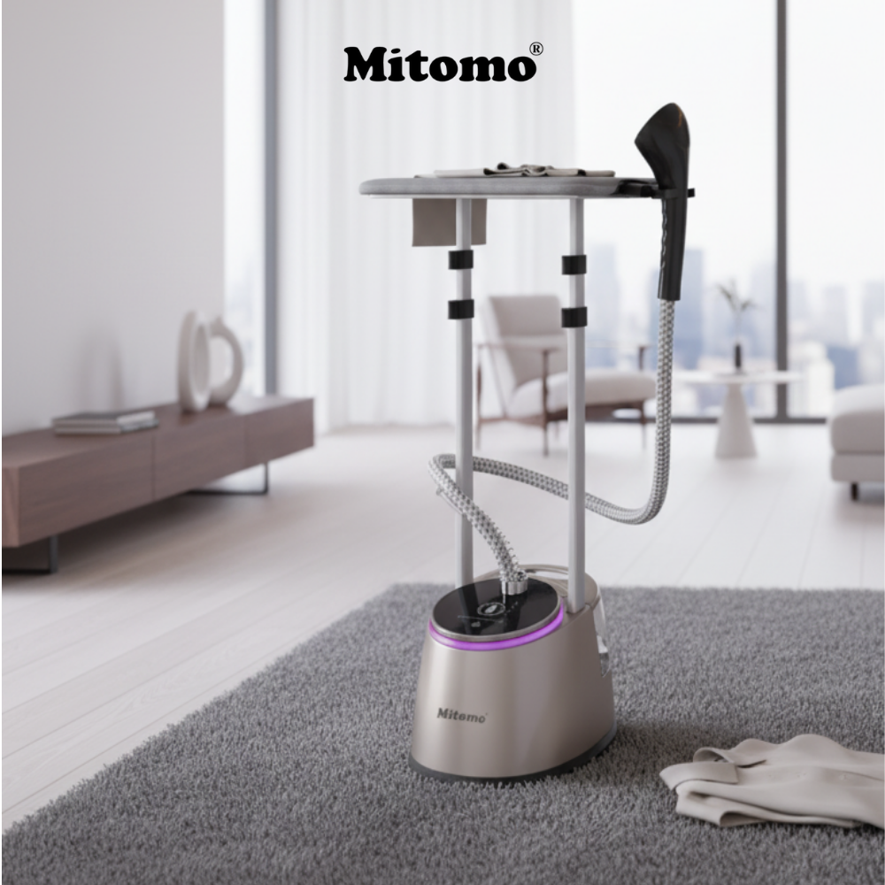 Bàn là hơi nước đứng Mitomo GC-899 Neo là loại bàn là đứng cao cấp, có thiết kế chắc chắn, kiểu dáng hiện đại. Thân máy được làm từ nhựa ABS cao cấp, phủ lớp sơn tĩnh điện sáng bóng. Thanh đỡ được làm từ hợp kim nhôm chắc chắn, chống rung lắc tối đa khi ủi đồ. Mặt bàn là làm từ thép không gỉ, kết hợp ống dẫn hơi chịu nhiệt, chống gập.