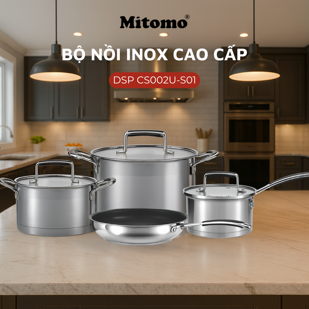 Hiện đại từ thiết kế đến chất liệu, bộ nồi chảo inox cao cấp Mitomo DSP CS002U-S01 chính là lựa chọn hoàn hảo cho những ai yêu bếp, thẩm mỹ tốt và và đề cao vấn đề an toàn cho sức khoẻ.