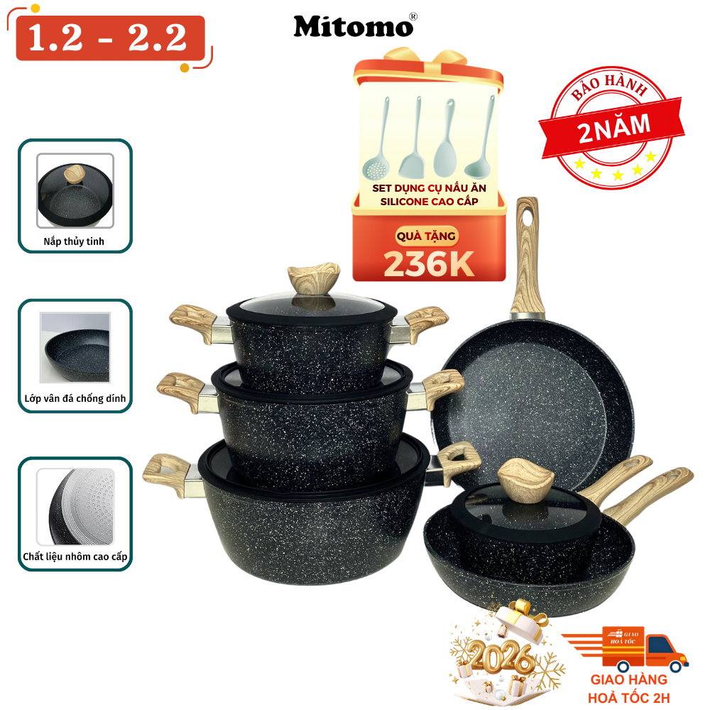 Bộ nồi chảo vân đá 6 món: