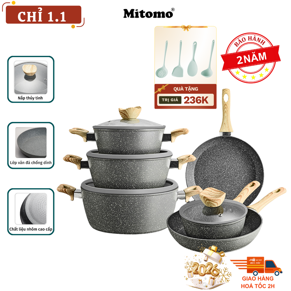 Bộ nồi chảo vân đá 6 món: