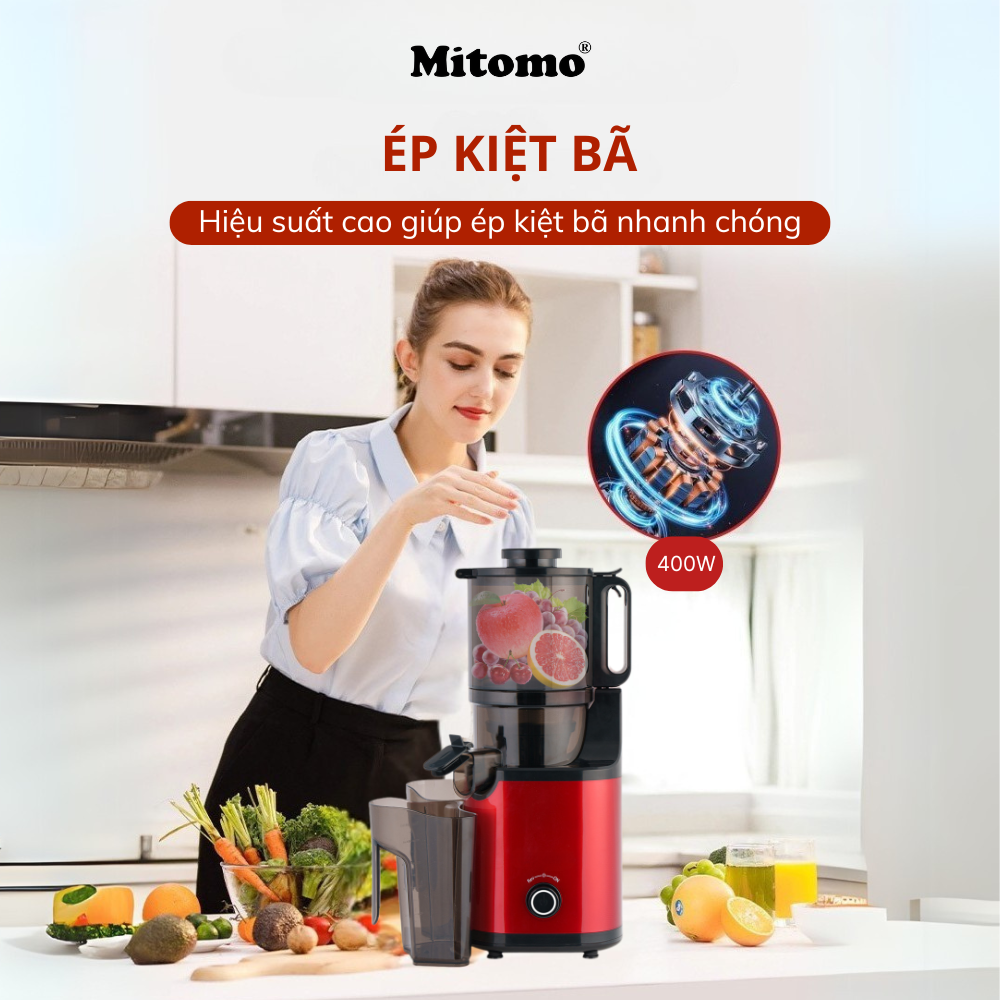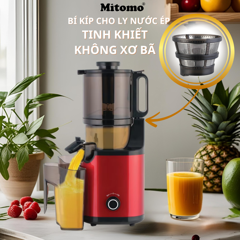 Máy ép trái cây, máy ép chậm Mitomo KJ-3081Max là phiên bản máy ép nâng cấp,ứng dụng công nghệ ép chậm thông minh, bảo toàn dưỡng chất có trong thực phẩm, là món đồ gia dụng bạn nên có để mang lại những ly nước ép, đầy đủ vitamin dưỡng chất, nâng cao sức khoẻ cho cả gia đình.