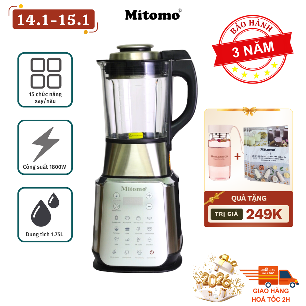 Máy làm sữa hạt xay nấu đa năng Mitomo MSH – 539V1 được thiết kế với kiểu dáng hiện đại, chắc chắn. Máy trang bị công suất lên đến 1800W vô cùng mạnh mẽ, động cơ 100% lõi đồng nguyên chất giúp máy hoạt động bền bỉ.
