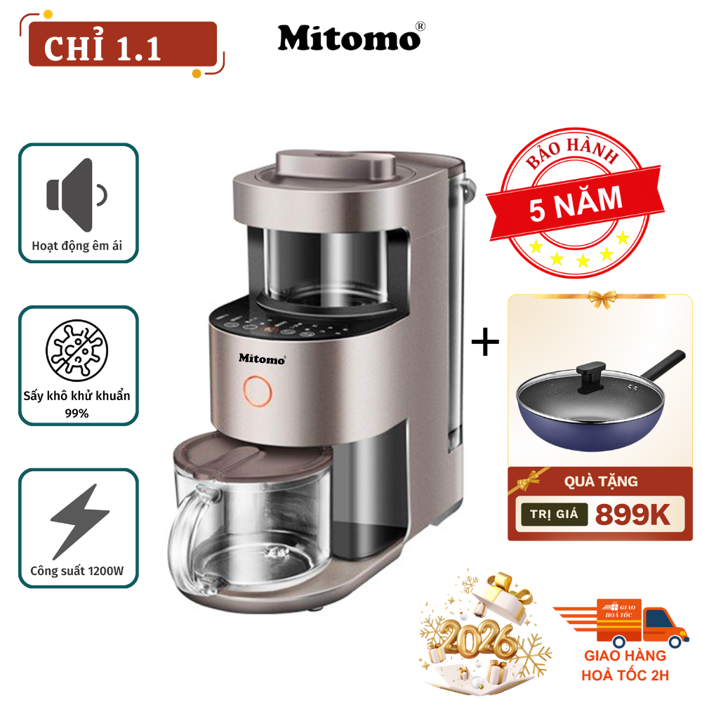 Model: UV-MT99MAX Màu sắc: Trắng Thương hiệu: Mitomo Xuất xứ thương hiệu: Việt Nam Tần số: 50/60Hz Điện áp: 220~250 VAC Chất liệu: Thuỷ tinh cao cấp, nhựa nguyên sinh tuyệt đối an toàn Tổng công suất: 850W; Công suất đun nước: 750W; Công suất sấy: 100W Dung tích ấm nước: 1.3L Trọng lượng: 6kg Bảo hành: 5 năm
