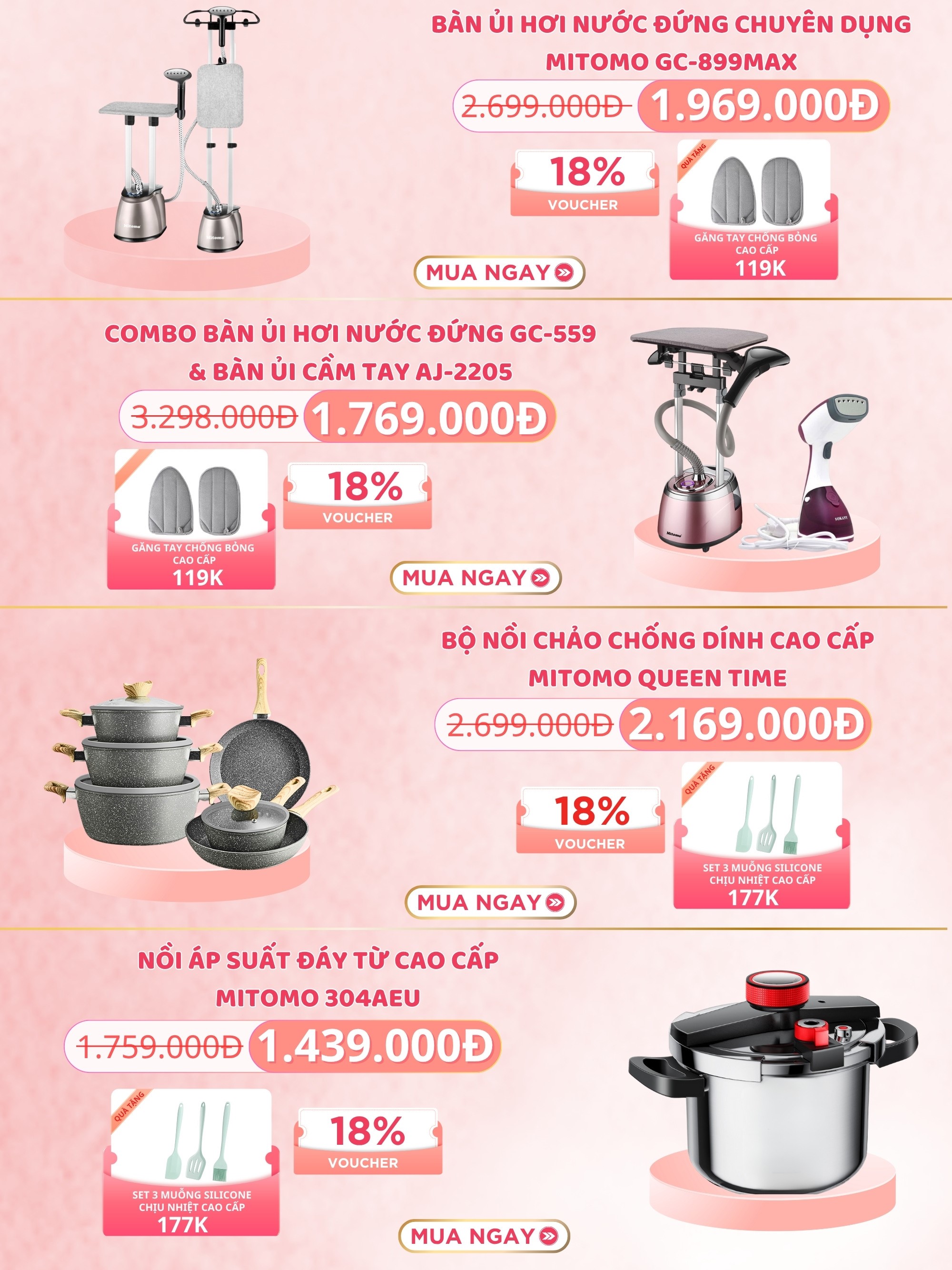 Dù bạn đang tân trang căn bếp, làm mới không gian sống hay tìm món quà yêu thương dành tặng bà, mẹ hay người phụ nữ của mình, đây chính là thời điểm lý tưởng để mua sắm và tận hưởng cùng Mitomo Việt Nam!