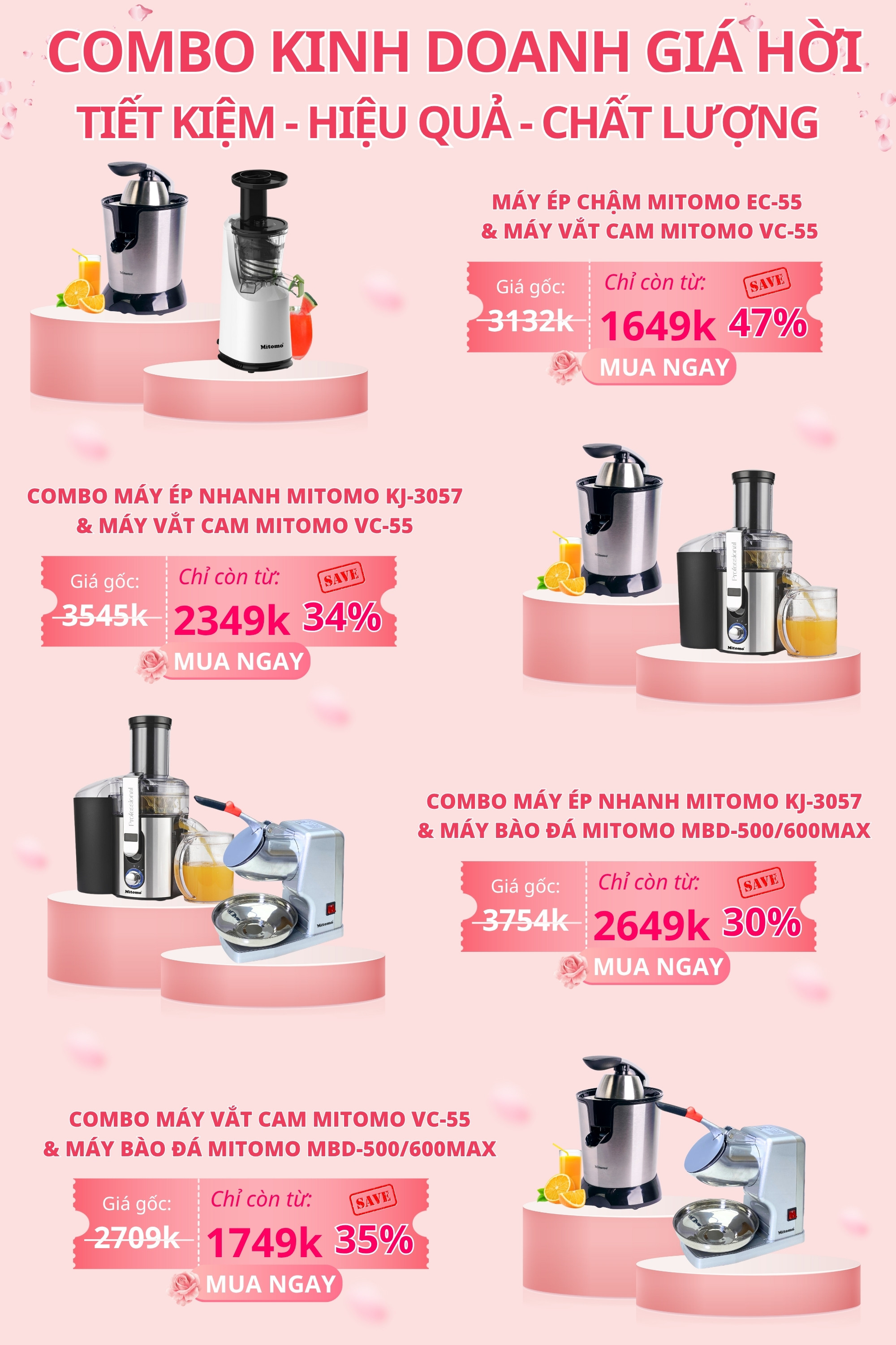- Trong tháng 10 này, Mitomo tiếp tục có những combo thiết bị hoàn hảo cho quán cà phê, nước ép, trà sữa với giá hời đến khó tin.