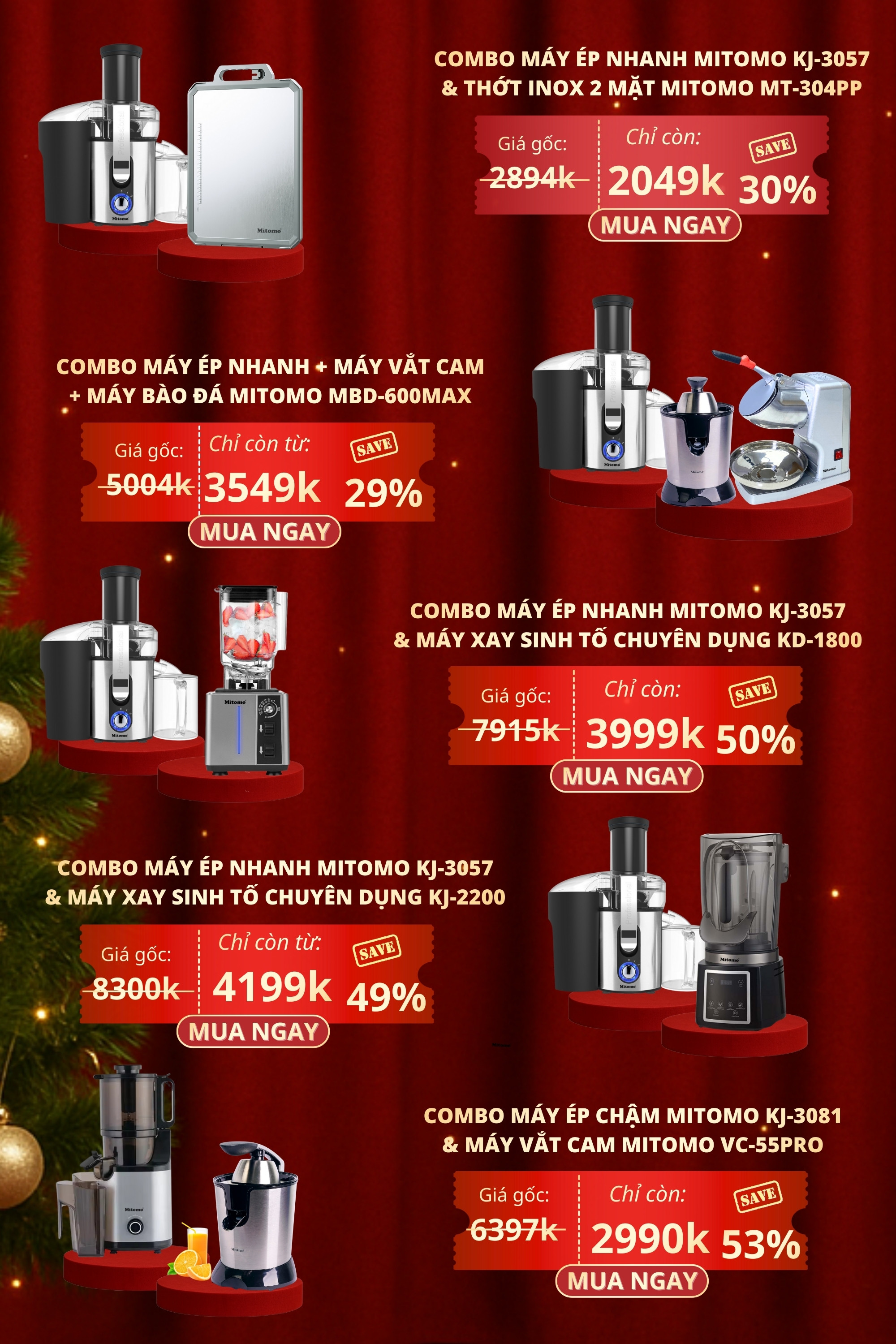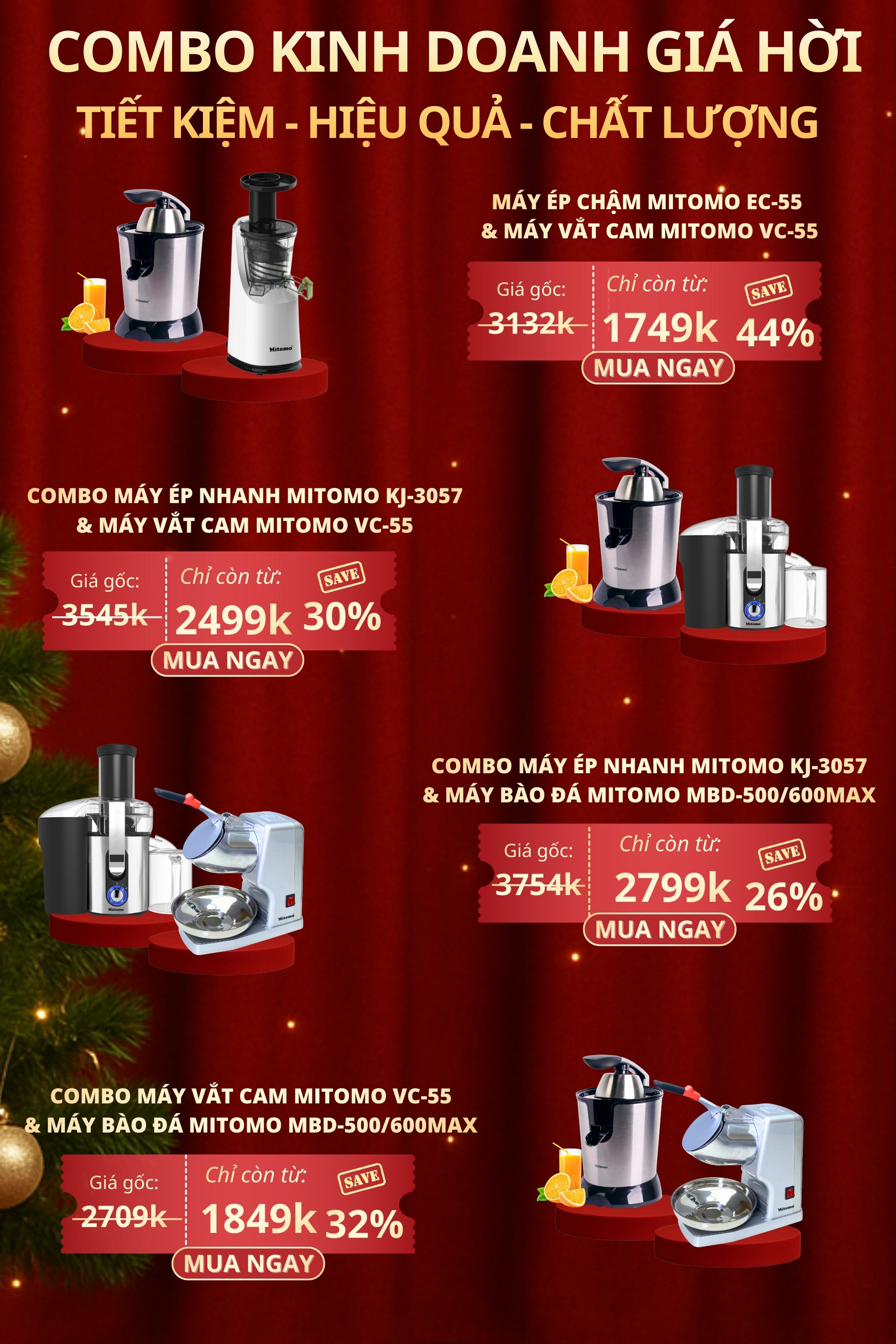 - Trong tháng 12 cuối năm này, Mitomo tiếp tục mở những combo máy móc hoàn hảo cho quán cà phê, nước ép, trà sữa với giá siêu tiết kiệm so với mua đơn lẻ.